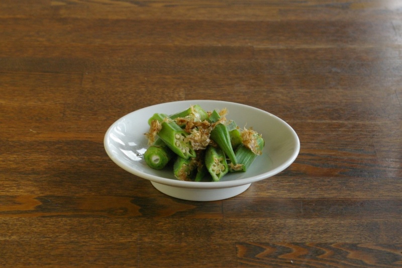 おくらにカツオ節をまぶし醬油で風味づけした和風のピクルスです。おくらのシャキシャキ感とネバネバ感が楽しめる一品で、冷ややっこにのせたり、お酒のおつまみにピッタリです。